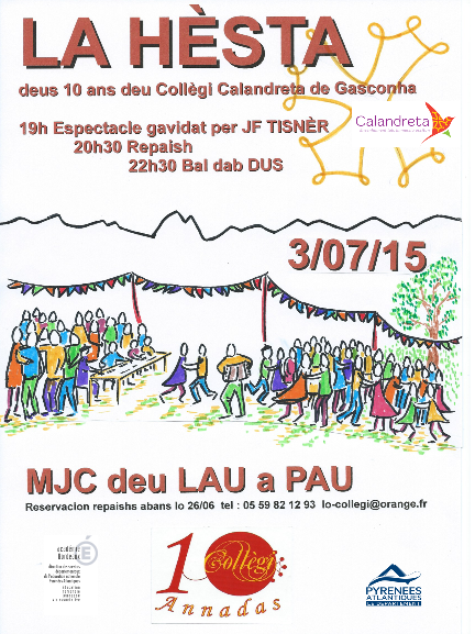 19:00 espectacle deus 10 ans : Joan Francés Tisnèr e los actors deu Collègi Calandreta de Gasconha